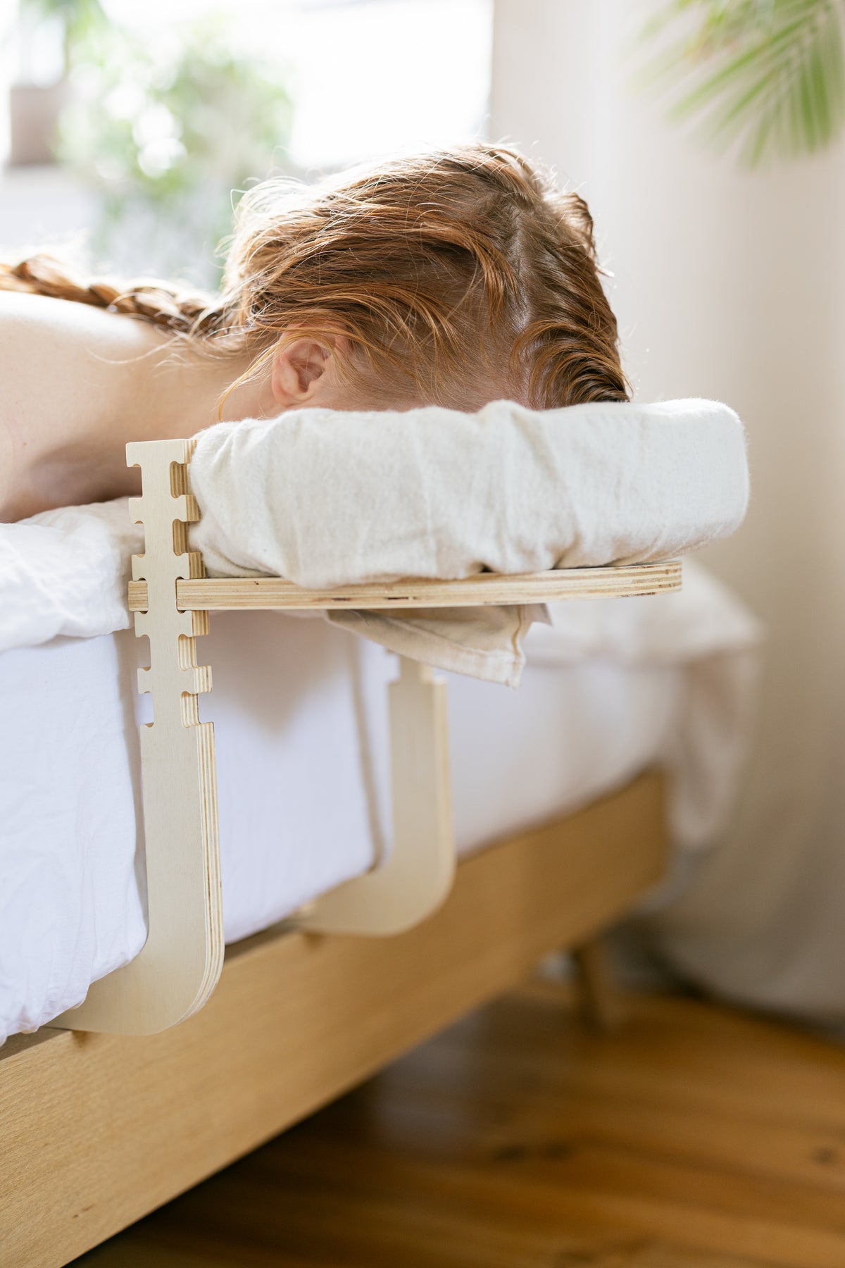 Endlich eine komfortable Bettmassage: Der Rahmen verlängert die Matratze und stützt den Kopf perfekt ohne Druckstellen.